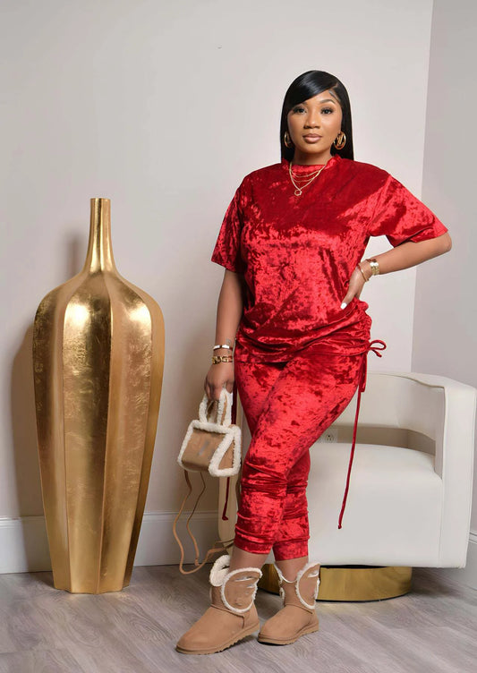 New Arrival 2024 Spring Fashion Lady Street Wear Short Sleeve Velvet Drawstring T-shirt and Pants set