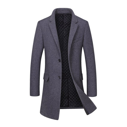 New Arrival Autumn And Winter Style Men Boutique Woolen Coat High Quality Solid Single Breasted Men's Thick Woolen Trench Coat