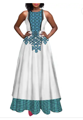 Private own tag label women dresses polyester fabric print on demand ethiopian traditional clothes