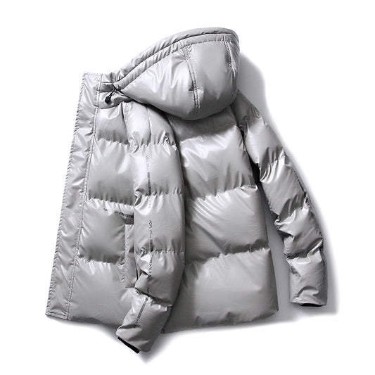 Thick Hooded Winter Jacket, Waterproof Shiny Coat for Male