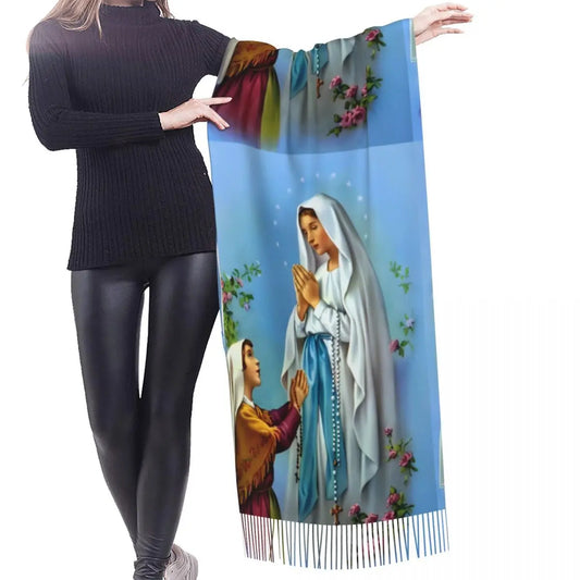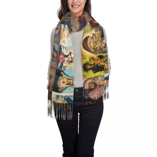 Virgin Mary Scarf Women Fashion Winter Wrap Shawl Catholic Christian Tassel Wraps