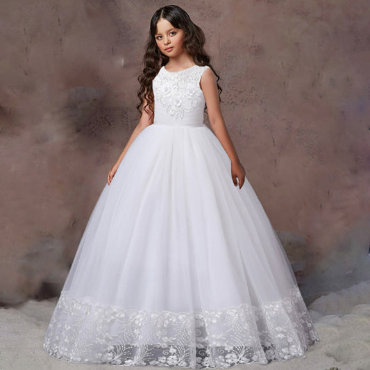 Vintage White Lace Bridesmaid Kids Flower Dress For Girls Children Long Formal Party Wedding Princess Dress Gown Costume 10 12 Y