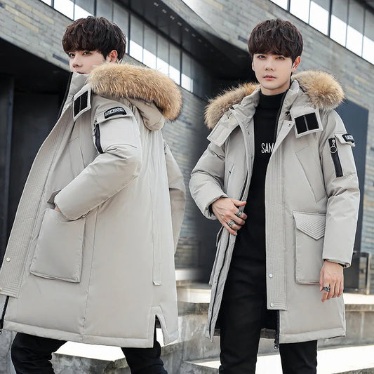 Winter Men's Polyester 90% Goose Duck Hooded Parka Coats Casual Loose Down Jacket
