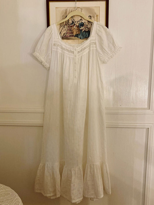 Women Pure Cotton Ruffles Vintage Nightgown Robe Lace Fairy Short Sleeve Victorian Night Dress