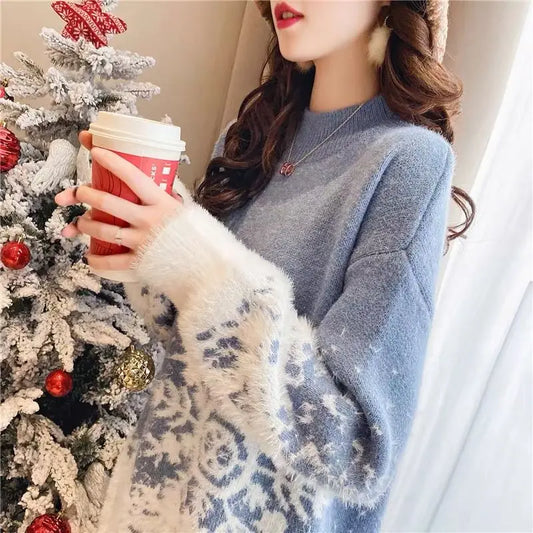 Women's Christmas-Themed Long Sweater – Winter Collection