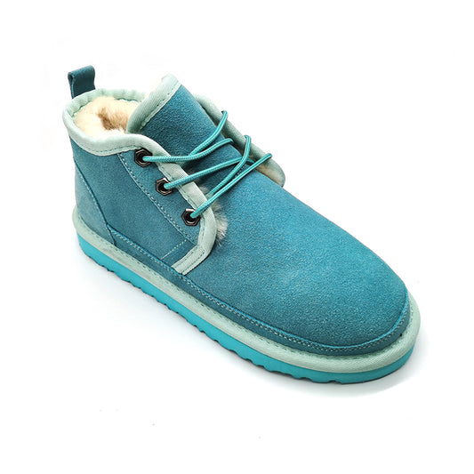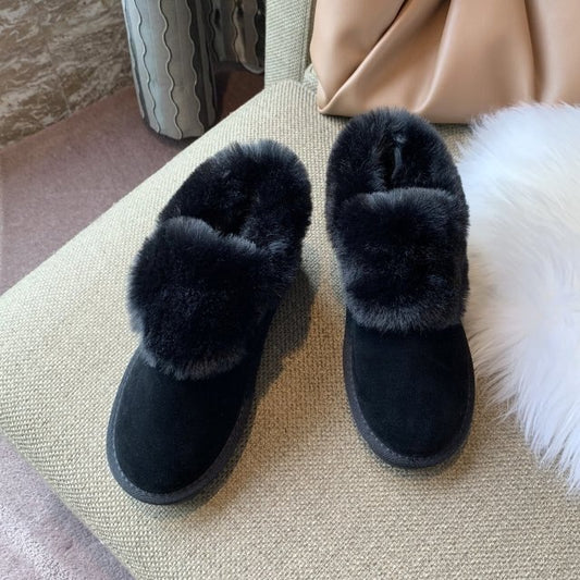 Women's Ankle Fur Snow Boots in Tan Black Rainbow Color Genuine Leather