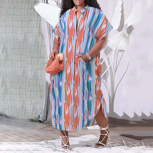 Women's Oversize Maxi Casual Dress Printed, Pleated, Shorts Sleeve, and O- Neck style