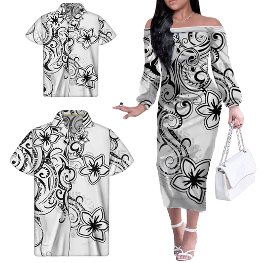 Family Matching Outfits Women Off Shoulder Dress, Men Shirts and Kids Shirt