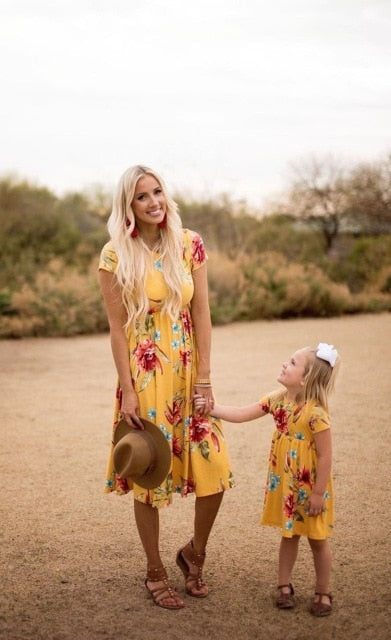 Mother And Daughter Dress Floral Matching Mom Girls Family Clothes Outfits Beach Dress Elegant Princess Pageant Vestidos