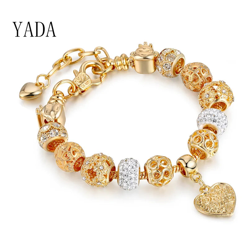 Gold colour heart love Crystal Bracelets & Bangles For Women