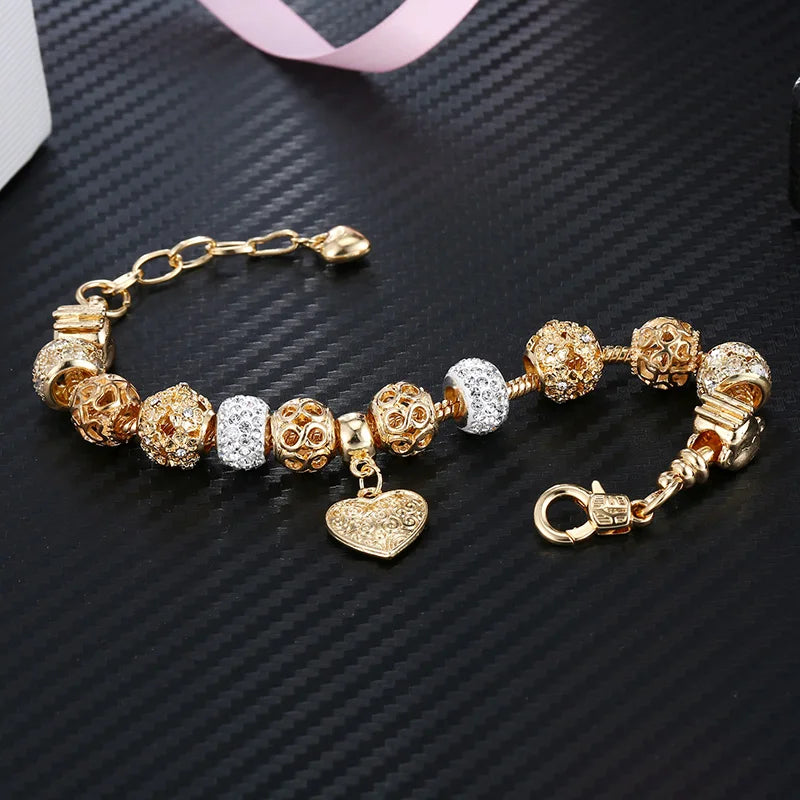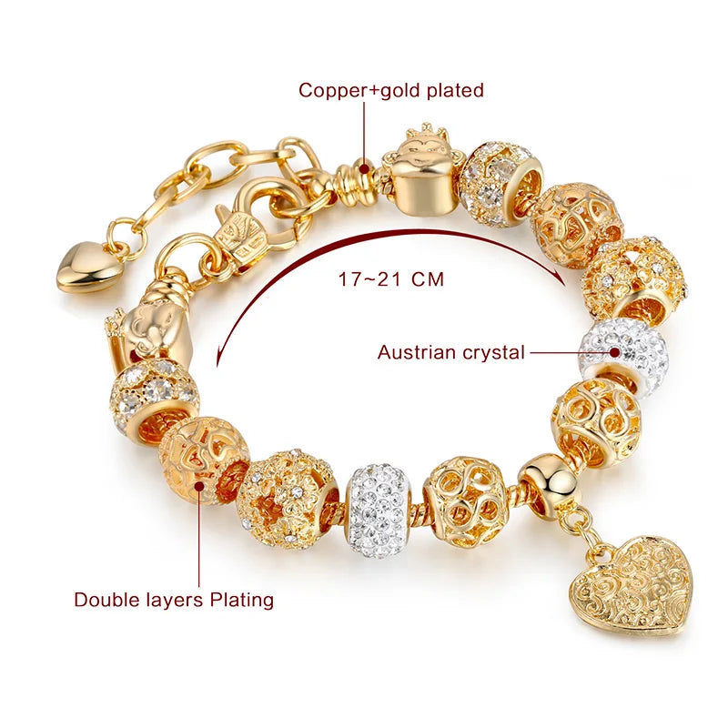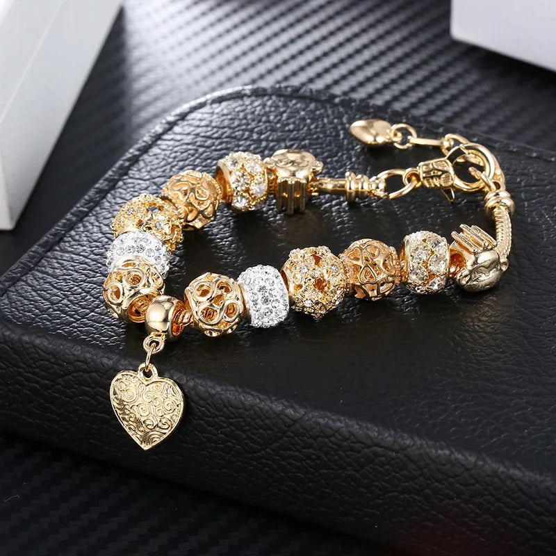Gold Colour Heart Love Crystal Bracelets & Bangles For Women
