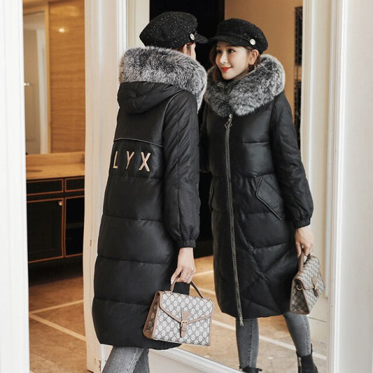 Leather Hooded Thick Collar Parkas Long jacket for men
