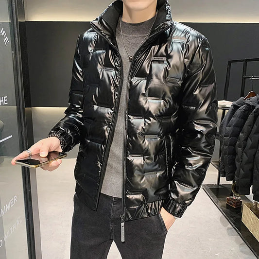 Bright-faced Cotton-padded Men's Winter Coat Light Down Cotton-padded Waterproof Warm Stand-up Collar Jacket