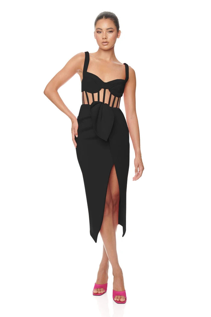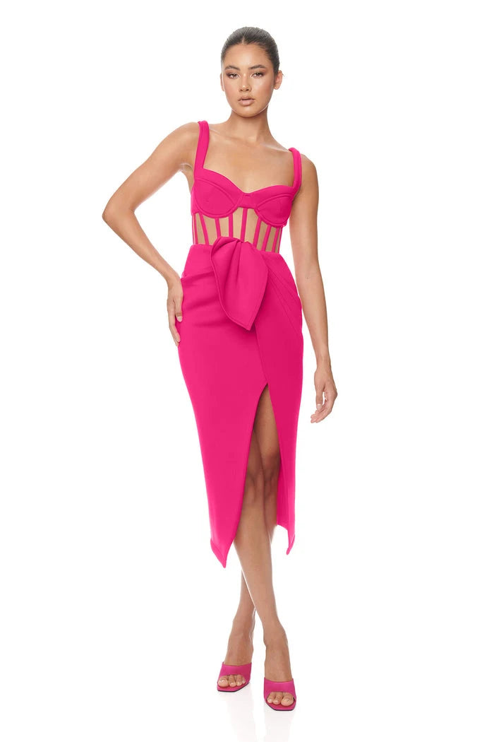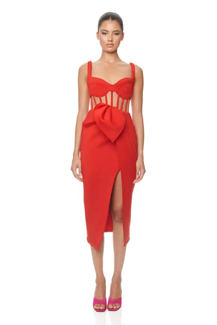 Get your hands on the Red Robe Hollow Suspender Split Dress now and make a statement wherever you go!