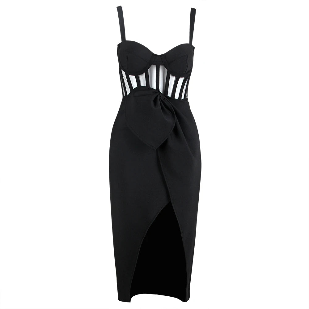 • What sets this dress apart is its unique hollow suspender design, adding a touch of edginess to the classic robe dress.
