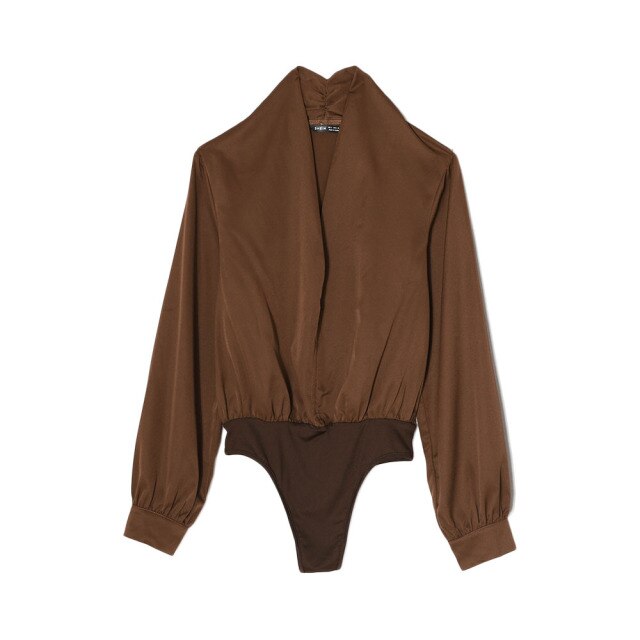 Autumn Women Sexy Elegant Bodysuits Female Ladies Solid Color V-Neck Long Sleeves Casual Drape Shirt Playsuits Brown Rompers