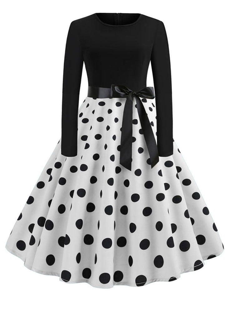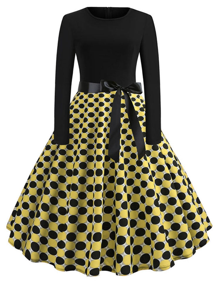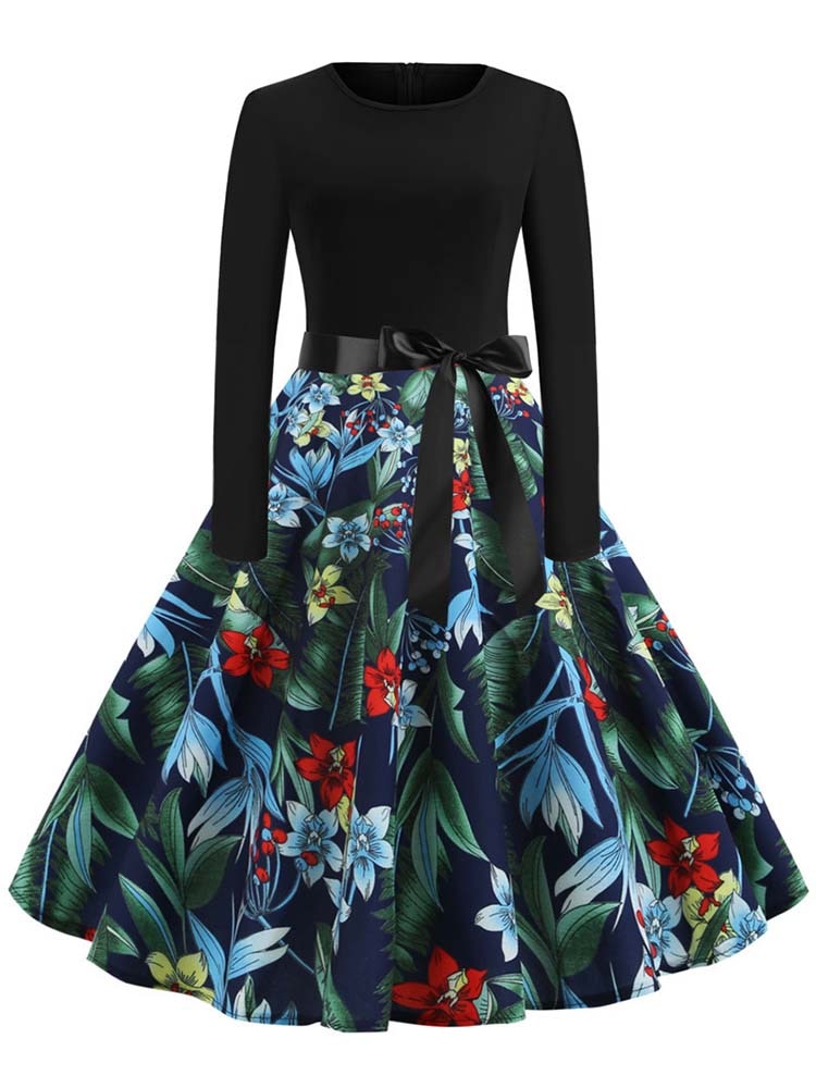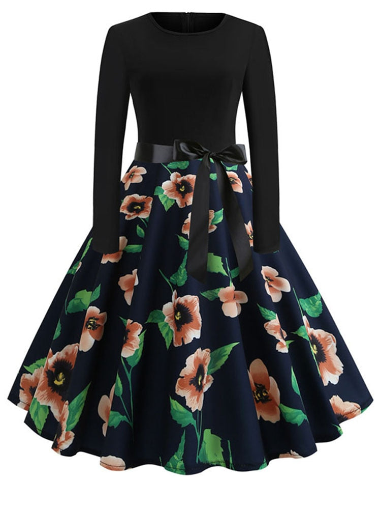 Elegant Christmas Dresses Vintage Robe Swing Long Sleeve Casual Print dress for womenk