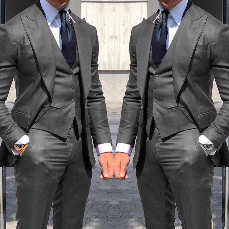 Latest Casual Style 3 Pieces Grey Men Suits Formal Groom Tuxedos Groomsmen Men's Wedding Prom Suits Bridegroom Jacket+Pants+Vest