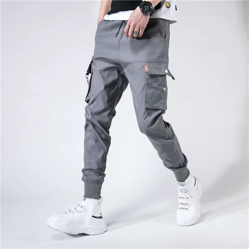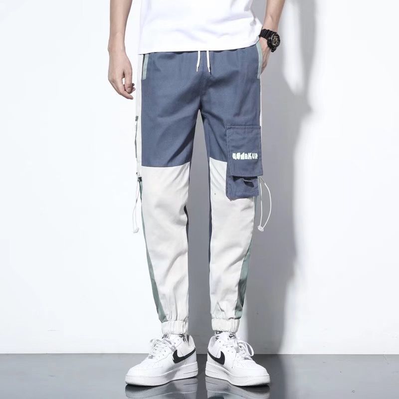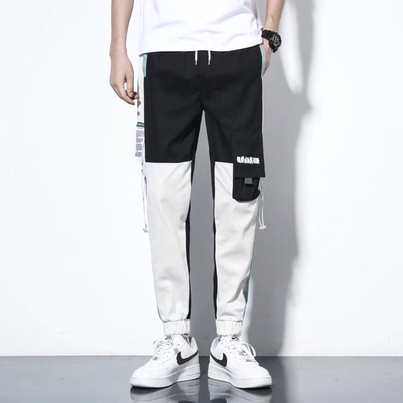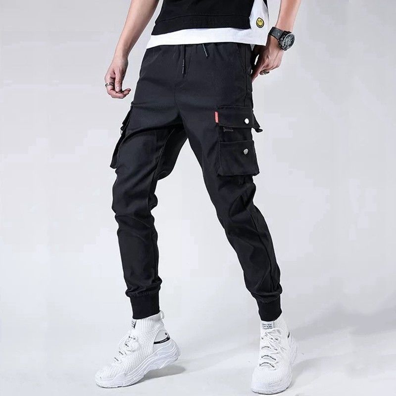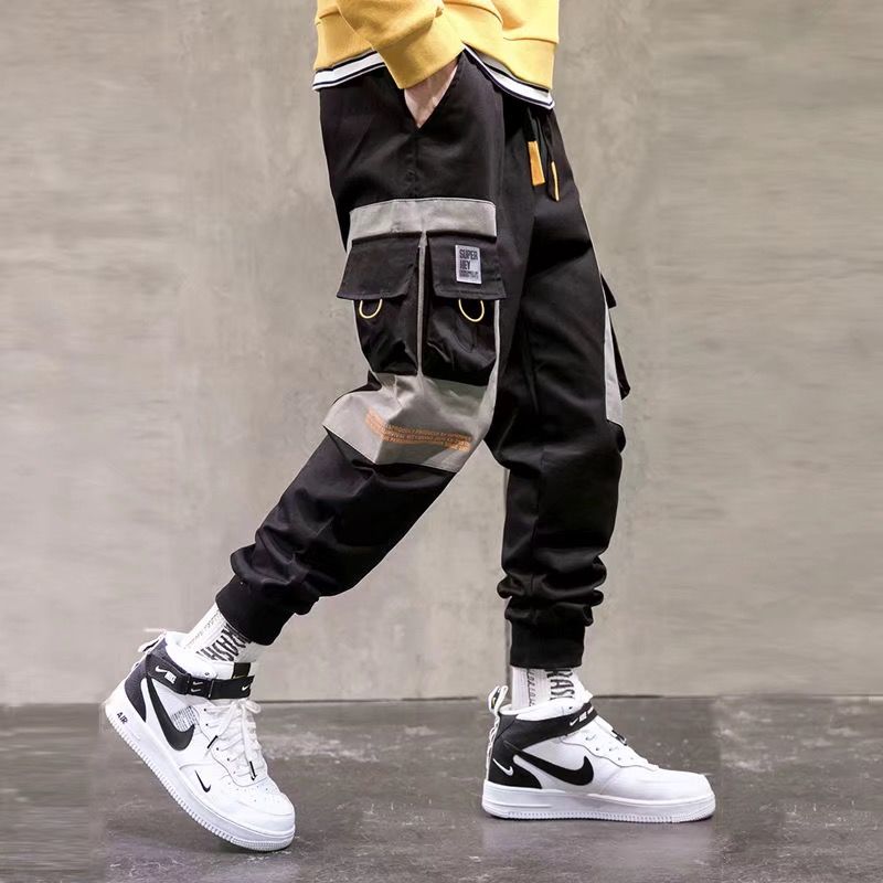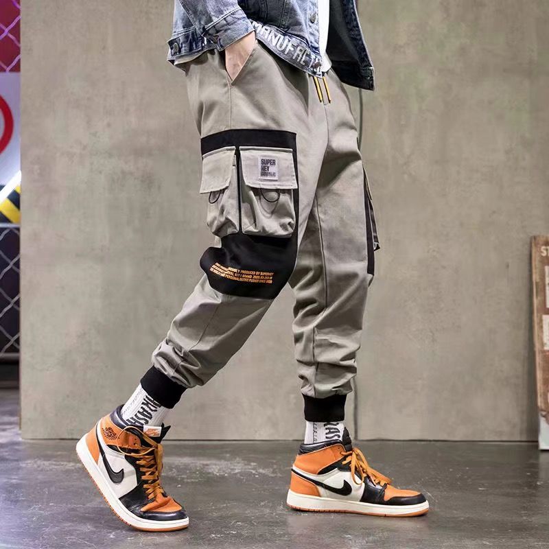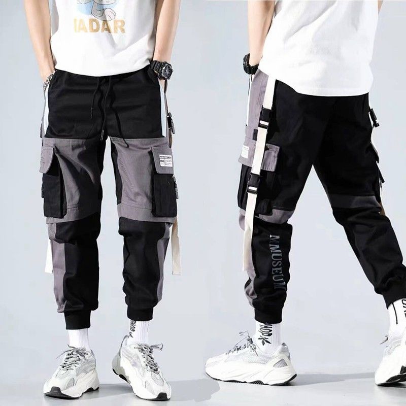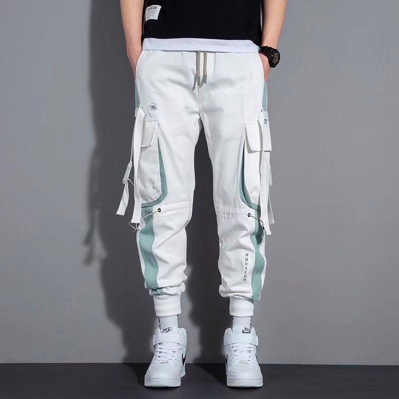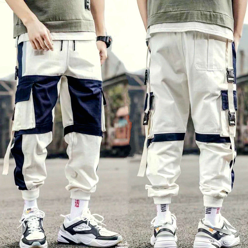 Men's Joggers Cargo Pants Casual Hip Hop Hit Color Pocket Trousers Ribbons Techwear