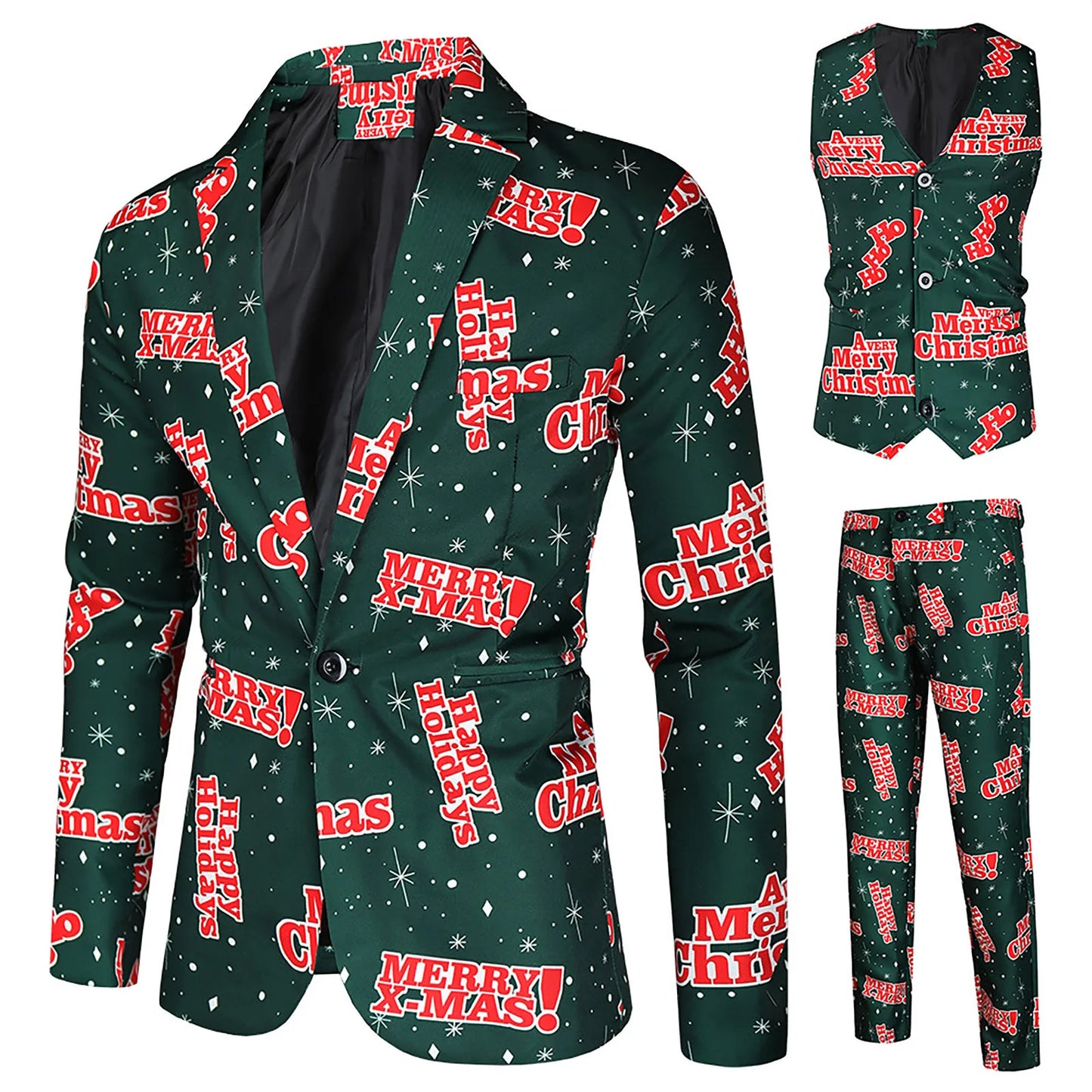 Men's Santa Claus Coat Christmas 3-Piece Suit – Blazer, Vest & Pants