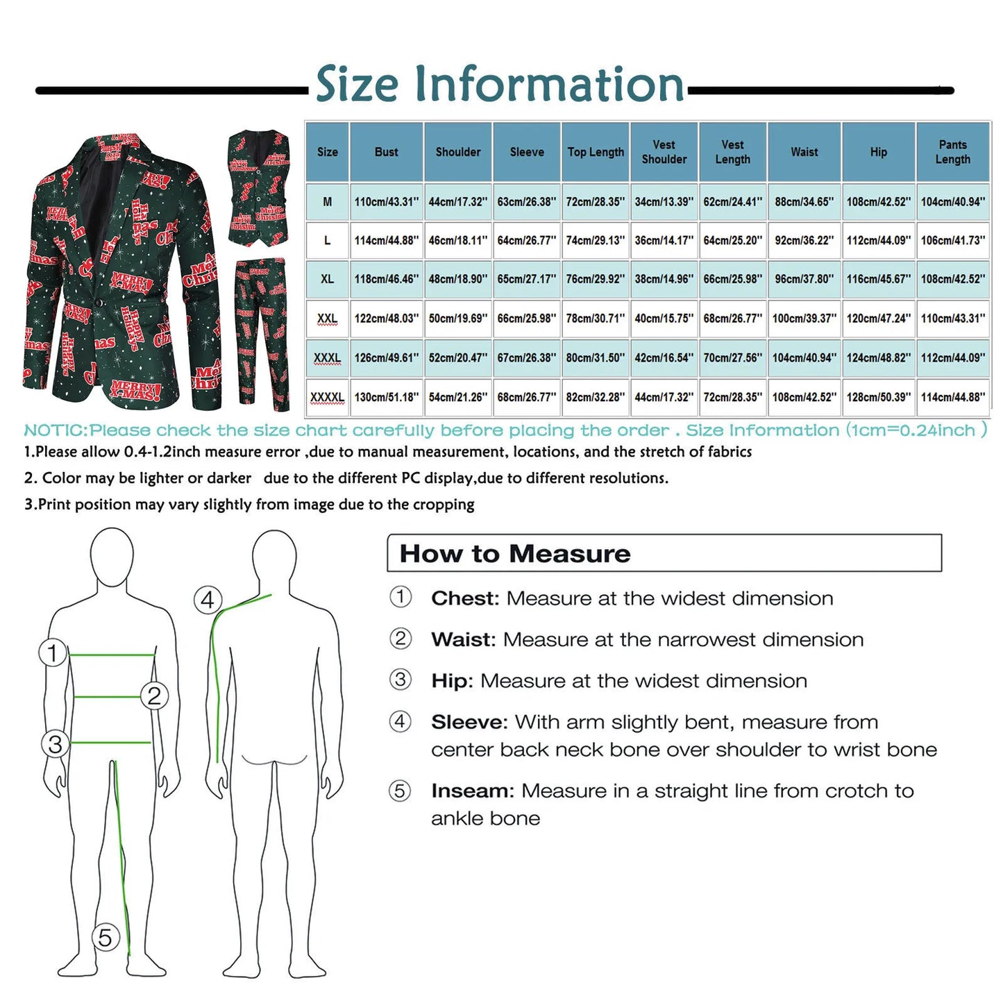 Step into the holiday season with this Men’s Santa Claus Christmas 3-Piece Suit, featuring a festive coat, vest, and pants. Designed to make a bold statement, this suit offers a fun and fashionable take on traditional Christmas attire. Made from high-quality polyester, the suit provides lightweight comfort for long holiday parties or family gatherings. The elastic waist on the pants ensures a perfect fit, while the V-neck vest adds a touch of class. Make every holiday event more joyful and memorable with this standout Christmas outfit.
