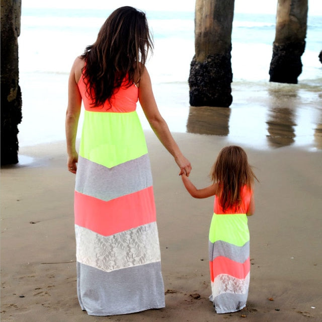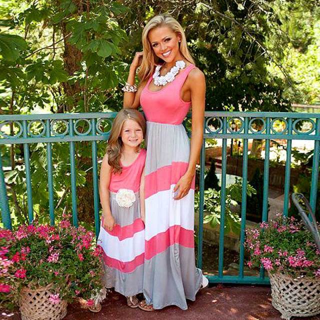Mum Sister Baby Girl Summer Mommy And Me Family Matching Mother Daughter Dresses Clothes Striped Mom Dress Kids Child Outfits