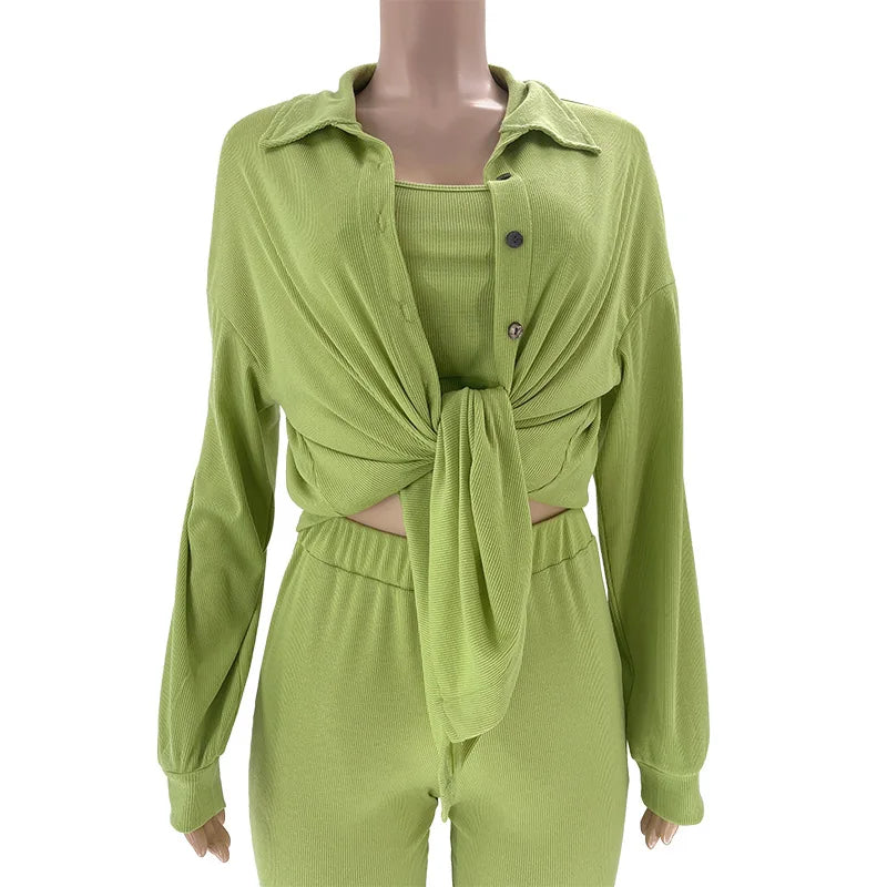 Solid Color Vest + Jackets + Pant Trend Single-breasted Women Three Piece Set Fashion Casual Cardigan