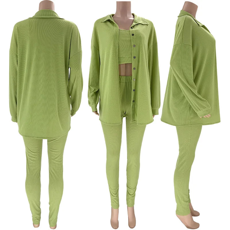Introducing our Solid Color Vest + Jackets + Pant Trend Single-breasted Women Three Piece Set Fashion Casual Cardigan.