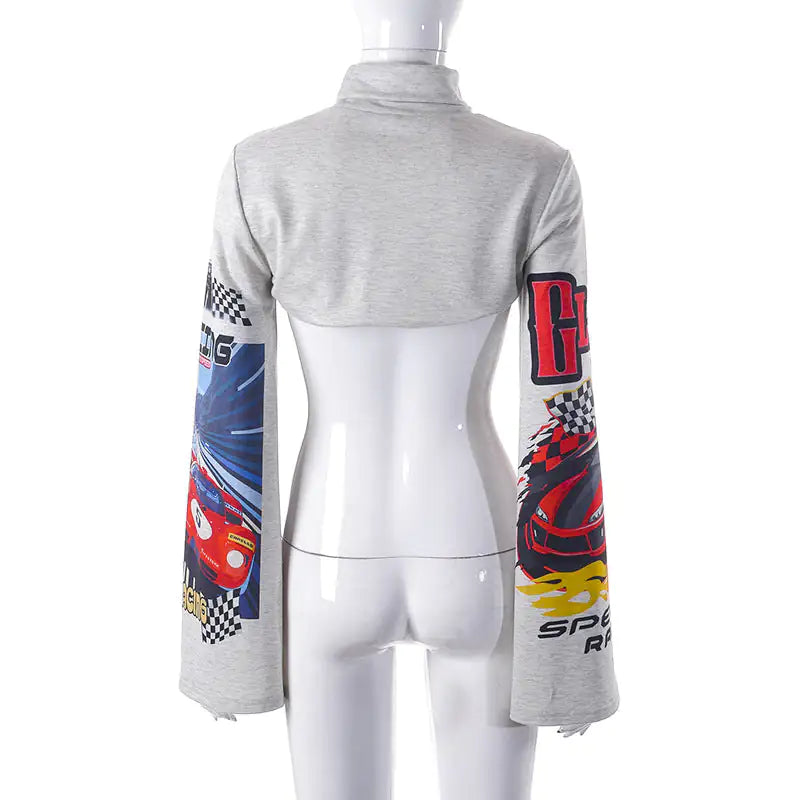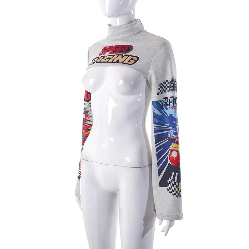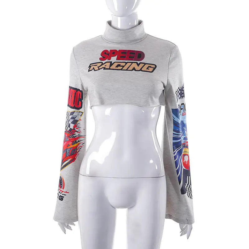 By incorporating these styling tips, you can effortlessly incorporate the Speed Racing Cropped Knit Turtleneck Top into your wardrobe in a professional and fun way. Whether you're headed to the office or out for a casual day, embrace the racing track print and let your style rev up to full throttle!