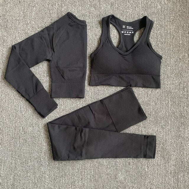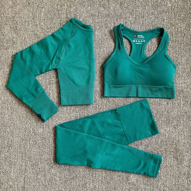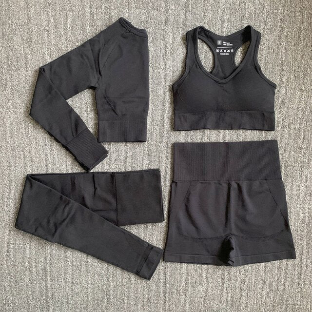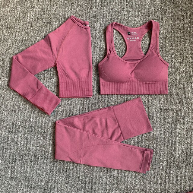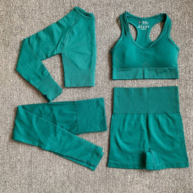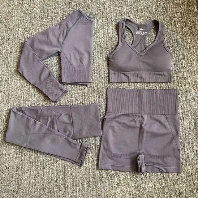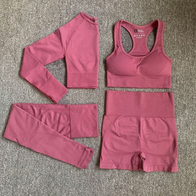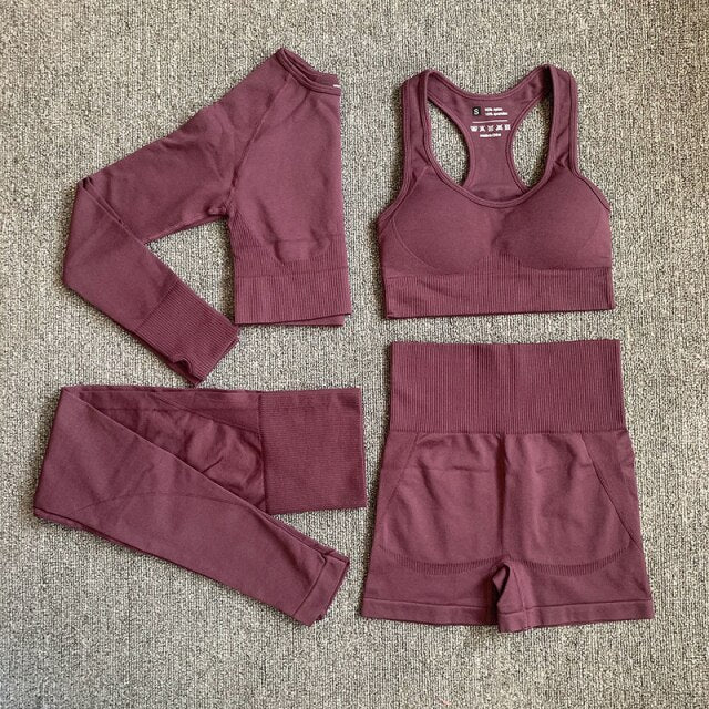 WOHUADI New 2/3/4PCS Seamless Women Yoga Set Workout Sportswear Gym Clothes Fitness Long Sleeve Crop Top Leggings Sports Suit