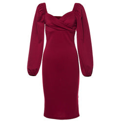 Women Sexy Pure V- Neck off shoulder bodycon dresses puff Sleeve Elegant dress