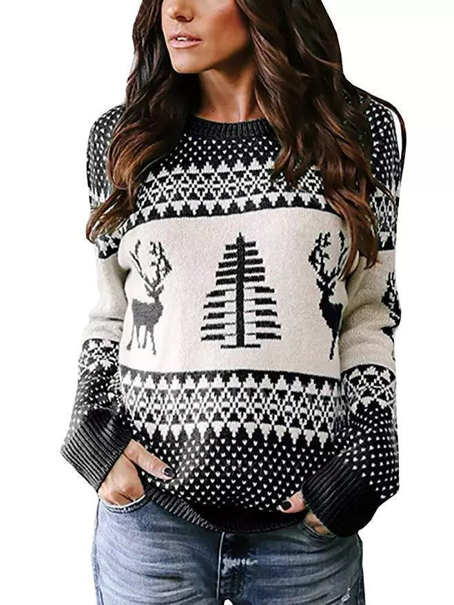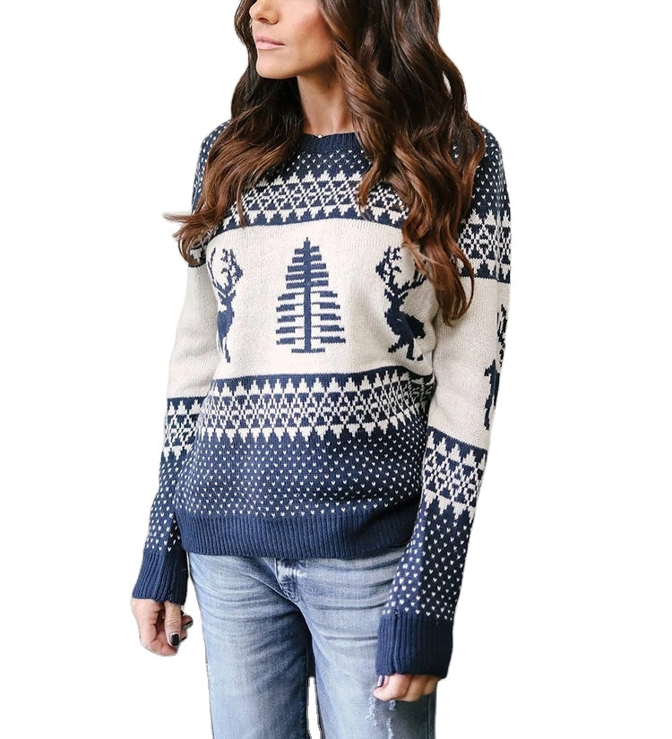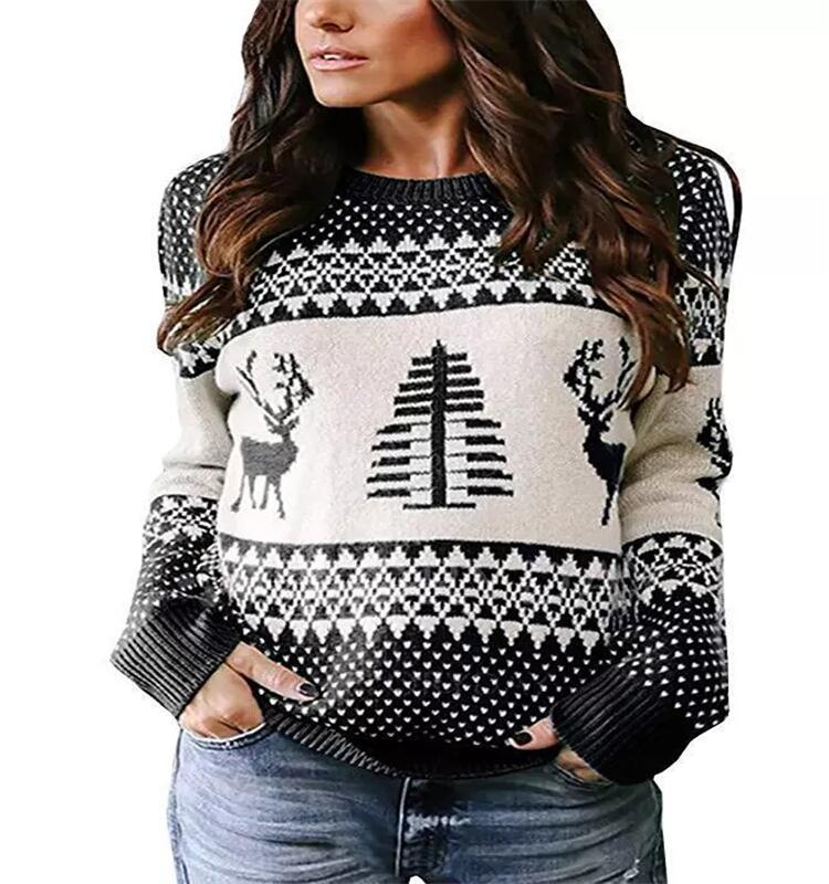 Women's knitwear long sleeve contrast color Christmas styles autumn winter oversized Ladies sweater