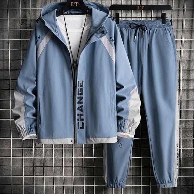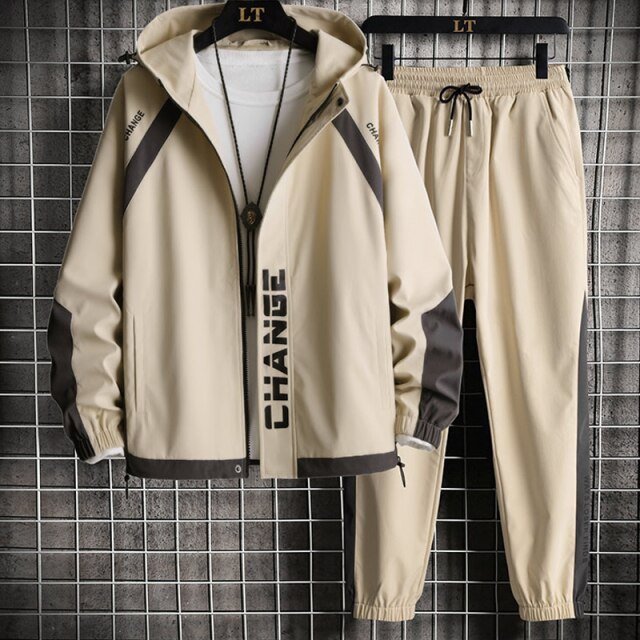 Korean Style Men's Fashion Patchwork Hip Hop Streetwear Hooded Tracksuit