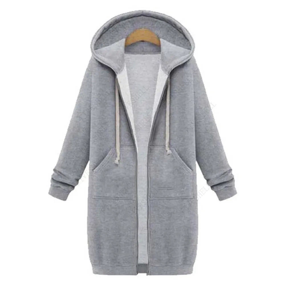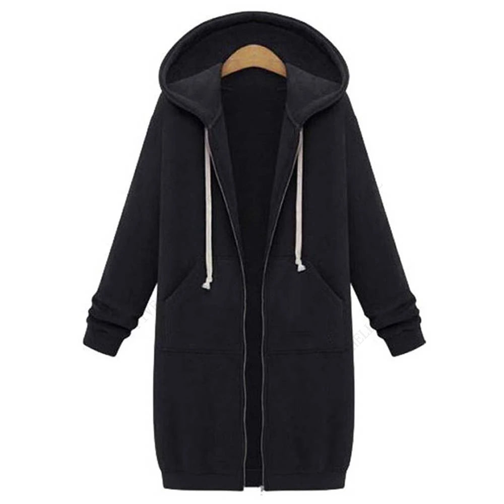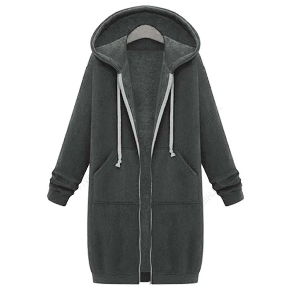 Autumn Winter Casual Women Long Hoodies Sweatshirt jackets with Pockets