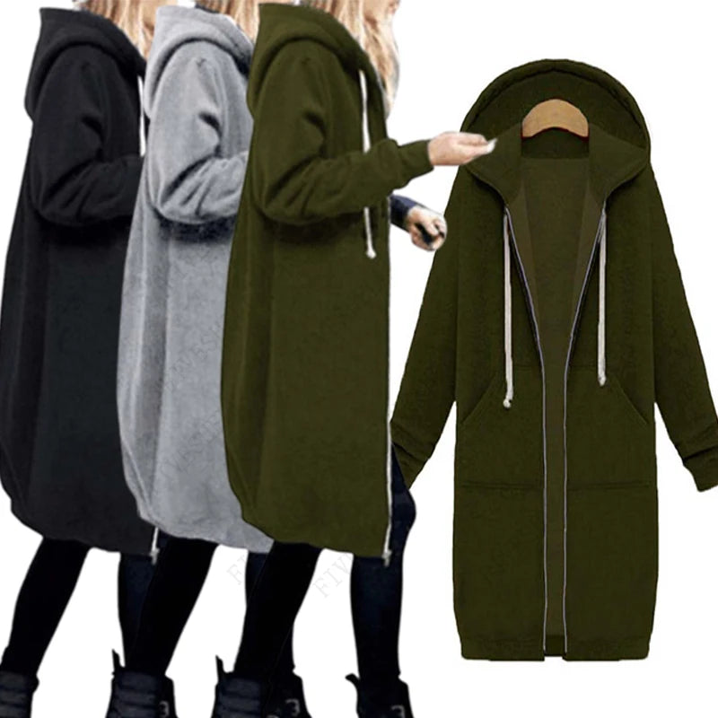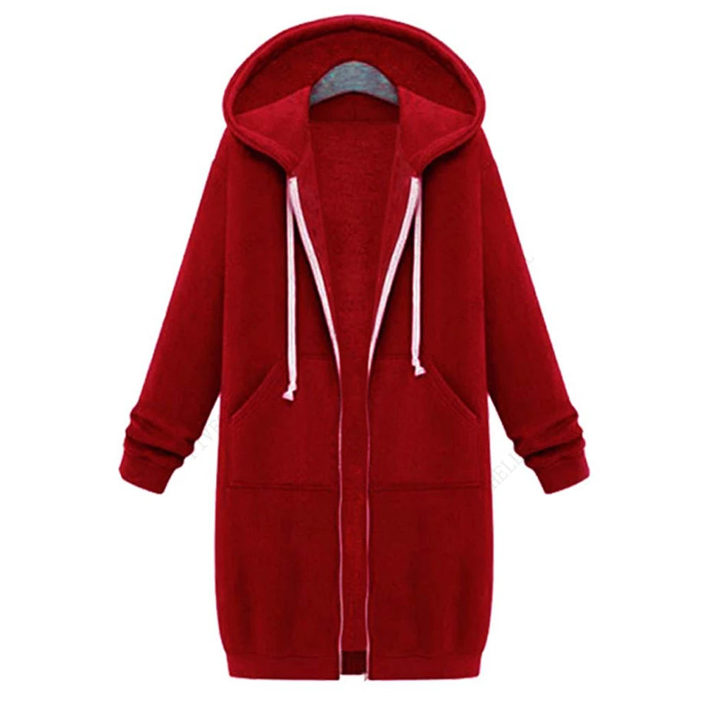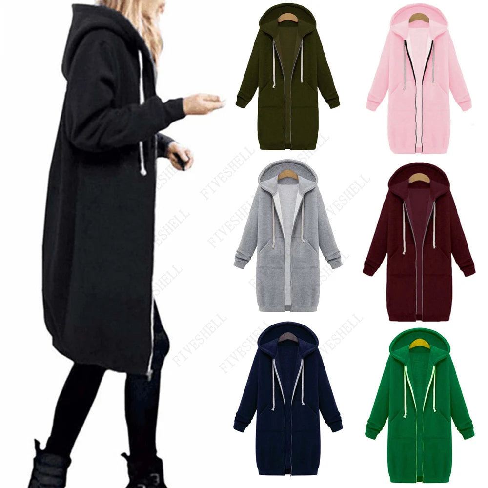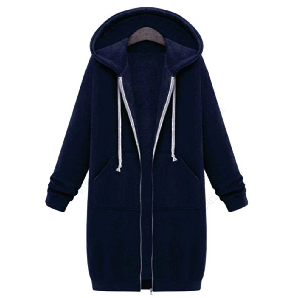 Autumn Winter Casual Women Long Hoodies Sweatshirt jackets with Pockets