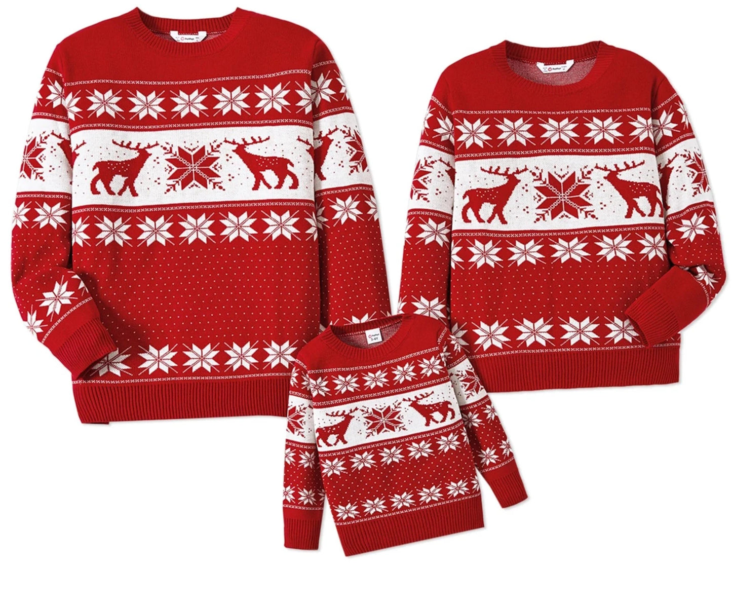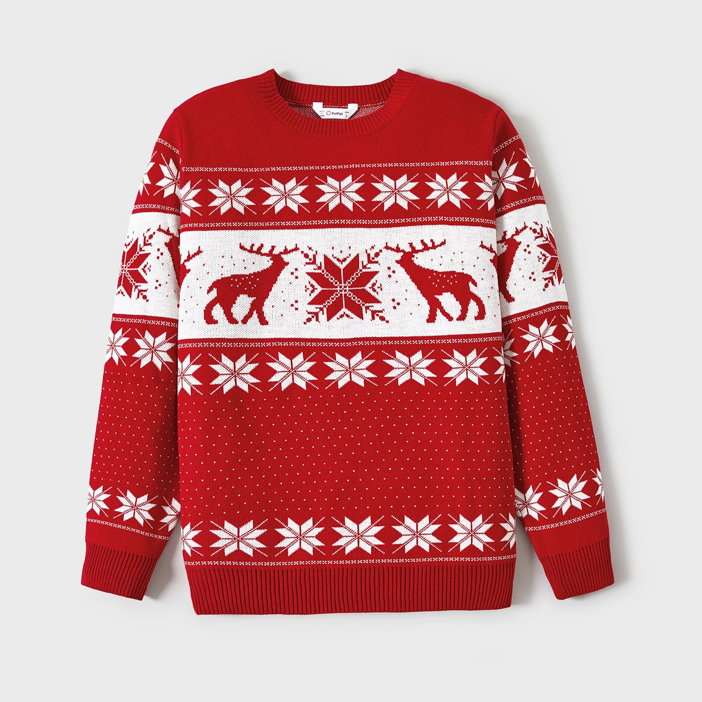 Christmas Sweater Family Matching Deer and Snowflake Graphic Long-sleeve Knitted Sweater