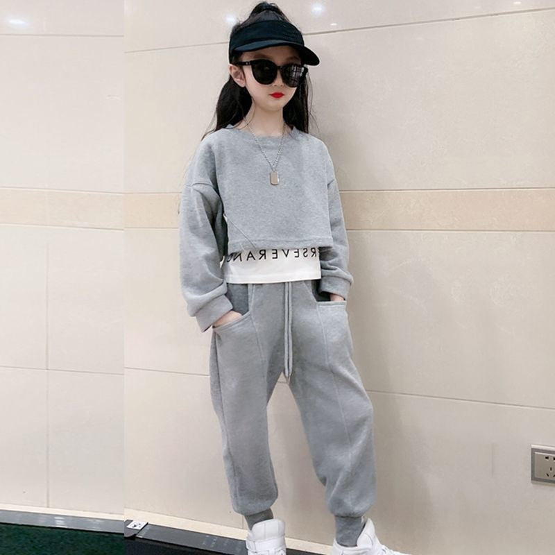 Girls Suits Spring Autumn Children Long Sleeve T-shirt + Pants Sports Hoodie 2pc Streetwear
