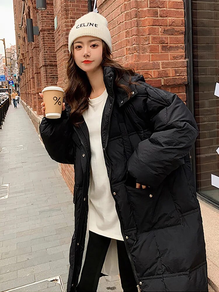 Long Parkas Winter Puffer Jacket Women Thicken Warm Bubble Coat Oversized Korean Casual Jackets