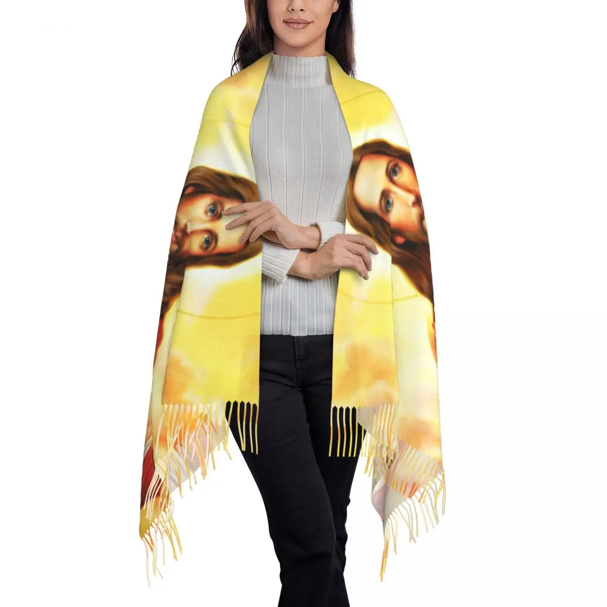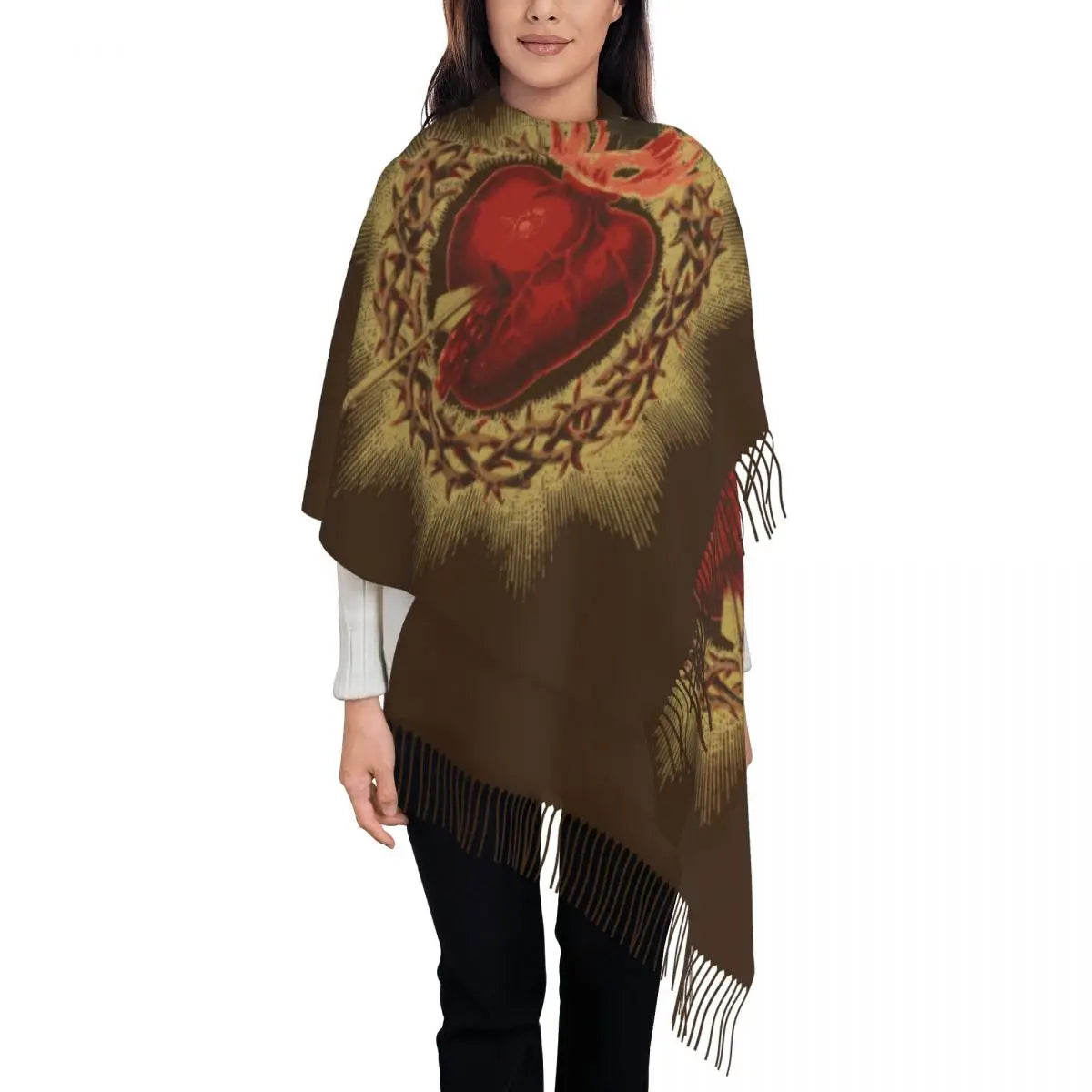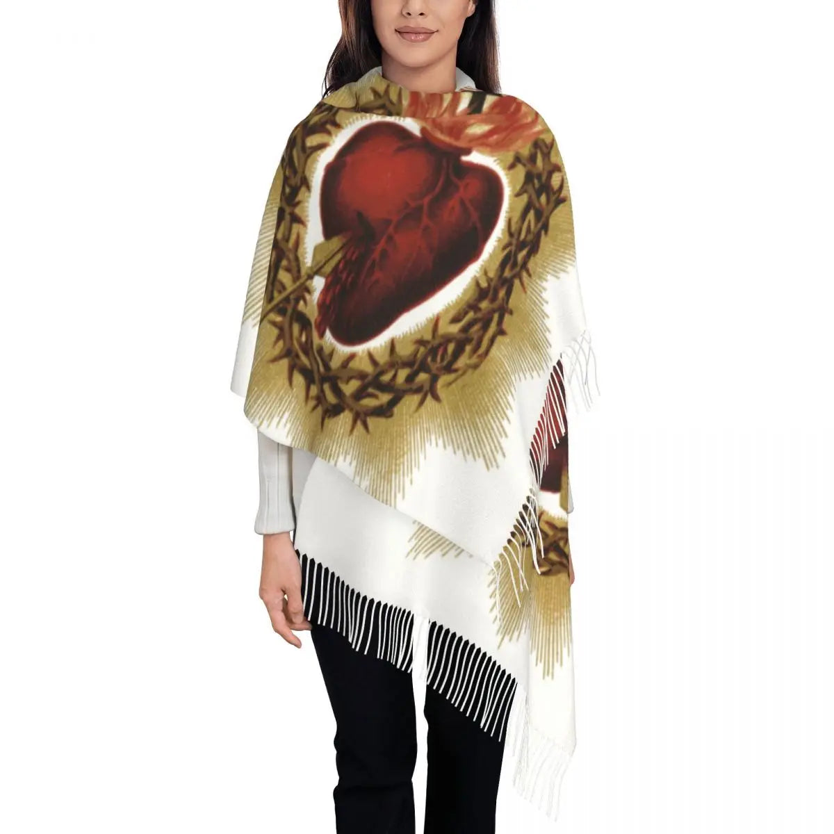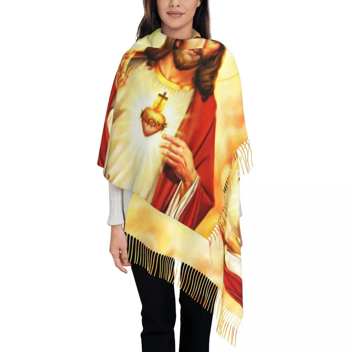 Stay warm and stylish this winter with our Long Warm Heart Of Jesus Scarves for Women.