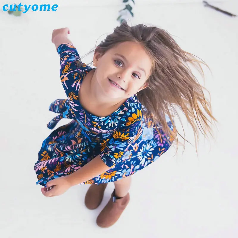 Introducing a unique and stylish product that will bring a special bond between mothers and daughters - the Mother Daughter Dresses Floral Print Half Sleeve Blue Dress Family Matching Outfits.