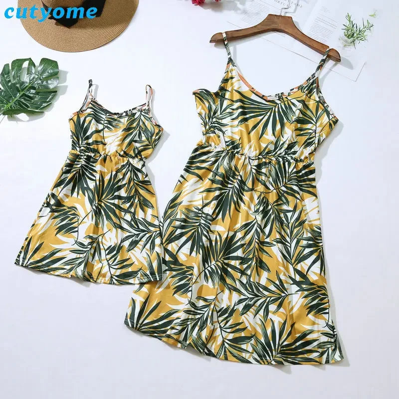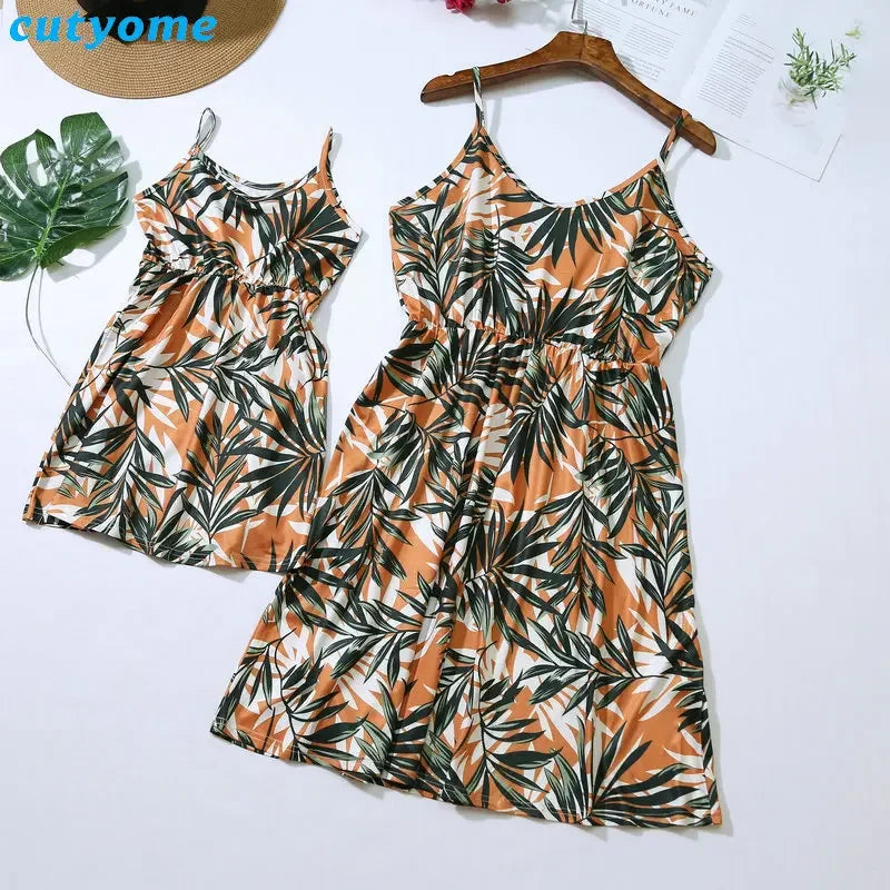 Make a statement with these unique and stylish matching outfits for mothers and daughters. This dress is perfect for the summer season, with its sleeveless design and loose fit, providing comfort and breathability.