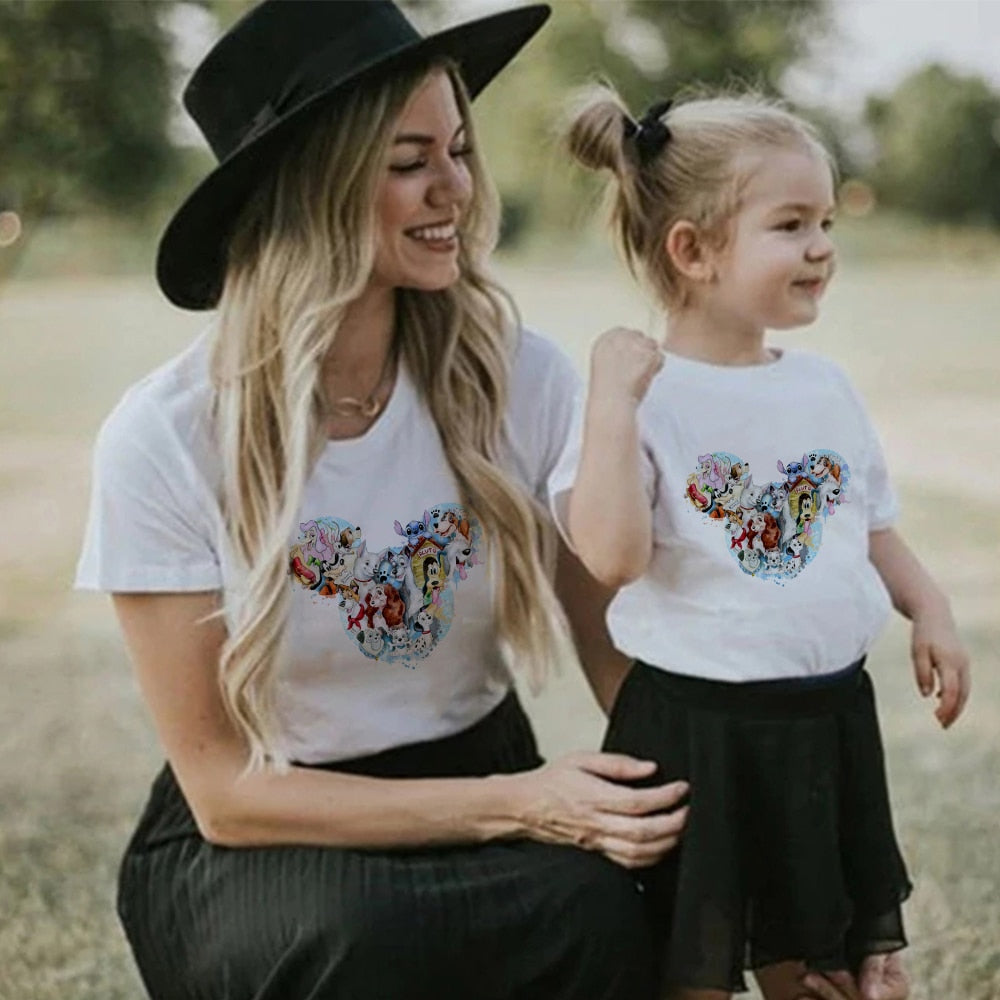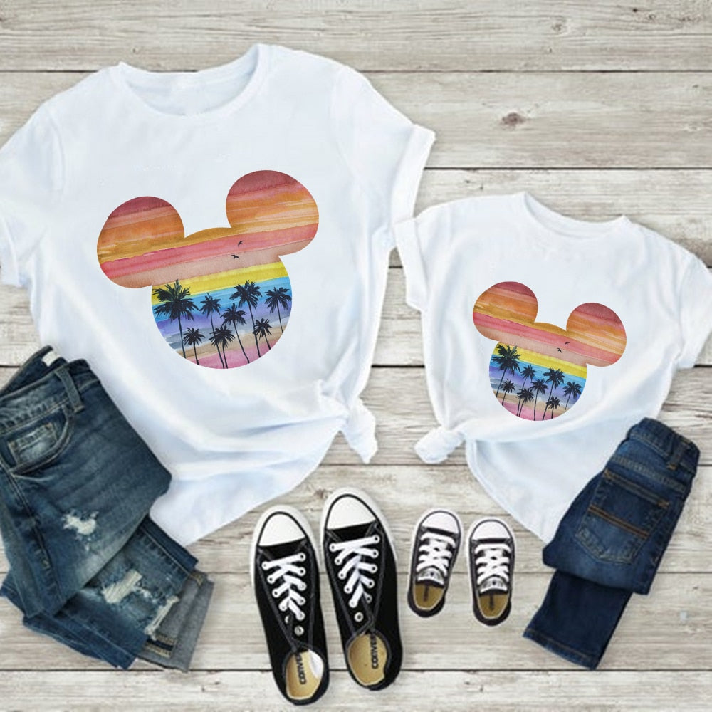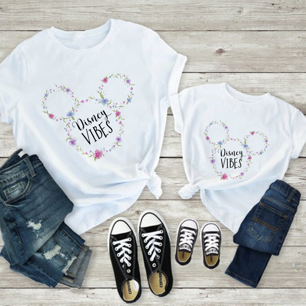 Mother Kids Fashion Disney Clothes Mickey Flowers Family Matching T-shirts