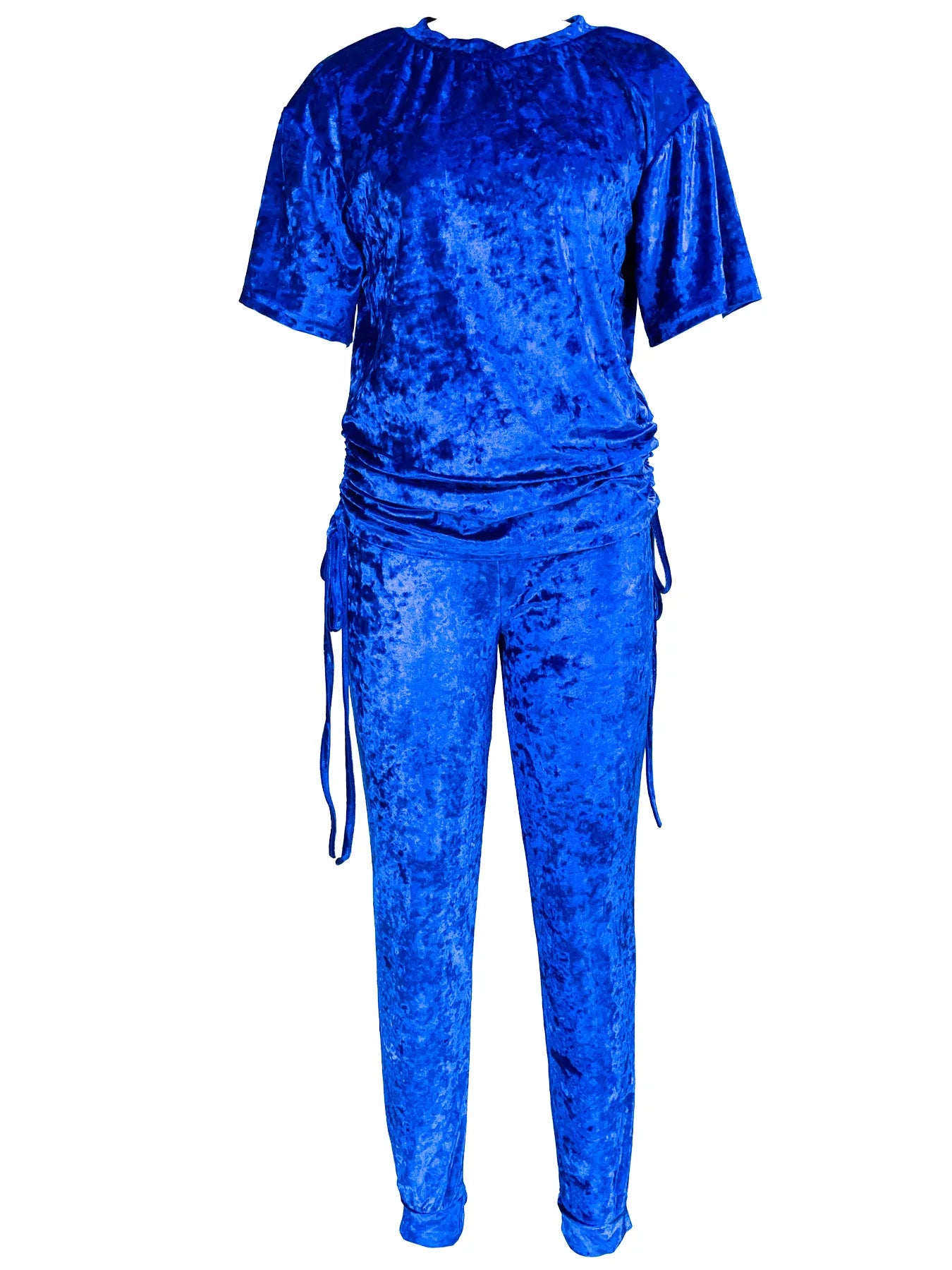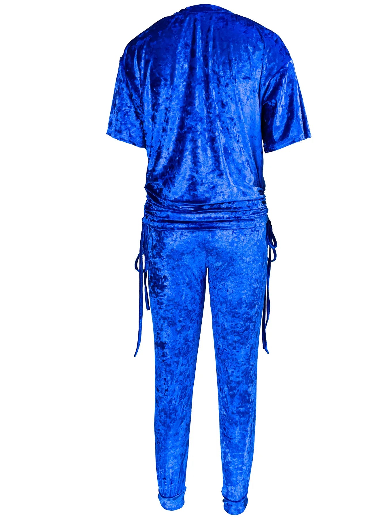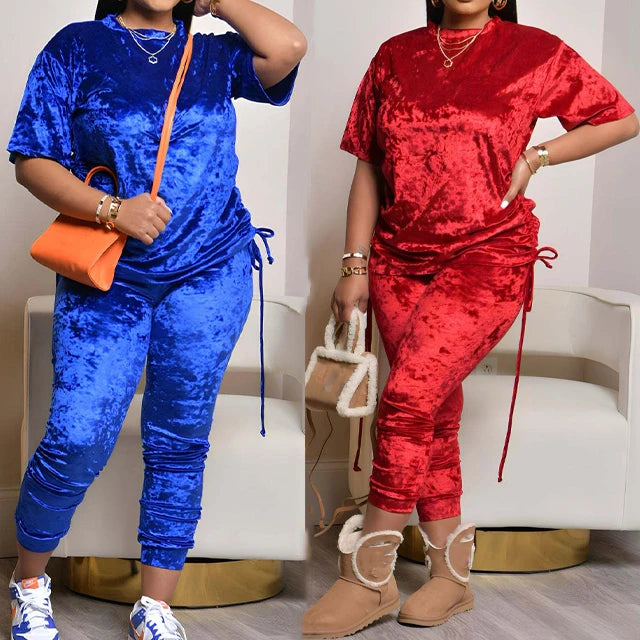 Introducing our latest arrival for the 2024 spring fashion season - the New Arrival Lady Street Wear Short Sleeve Velvet Drawstring T-shirt and Pants set.