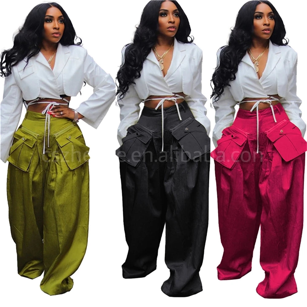 New Arrivals Unique Vintage Trending Loose Pocket Straight Wide Leg Pants for Women