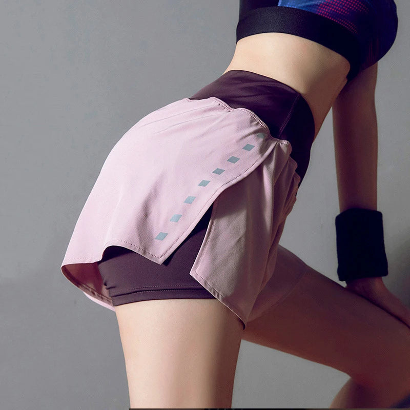 New Sports Shorts with Underpants Two-piece Fitness Loose Workout Shorts for Women's