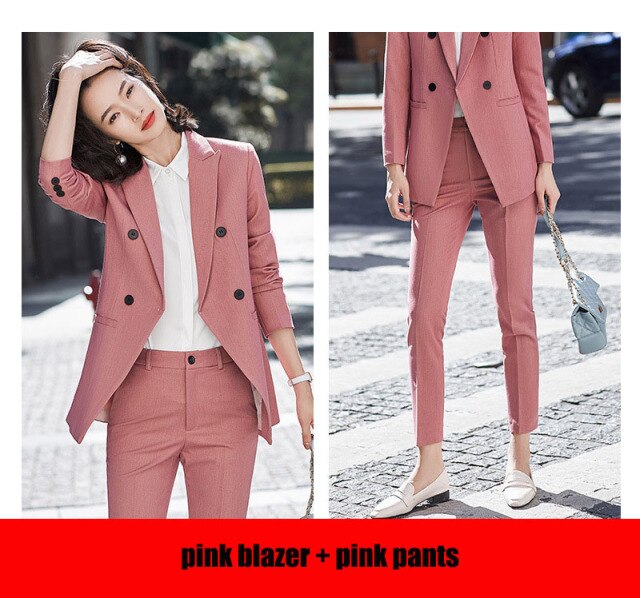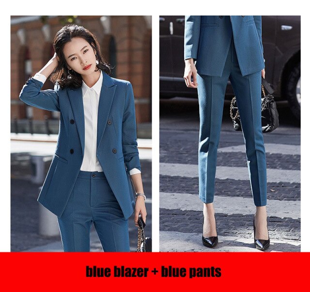 Upgrade your wardrobe with this New Women’s Suits Blazer Tops and Pants Two-Piece Set, perfect for office wear and formal occasions.