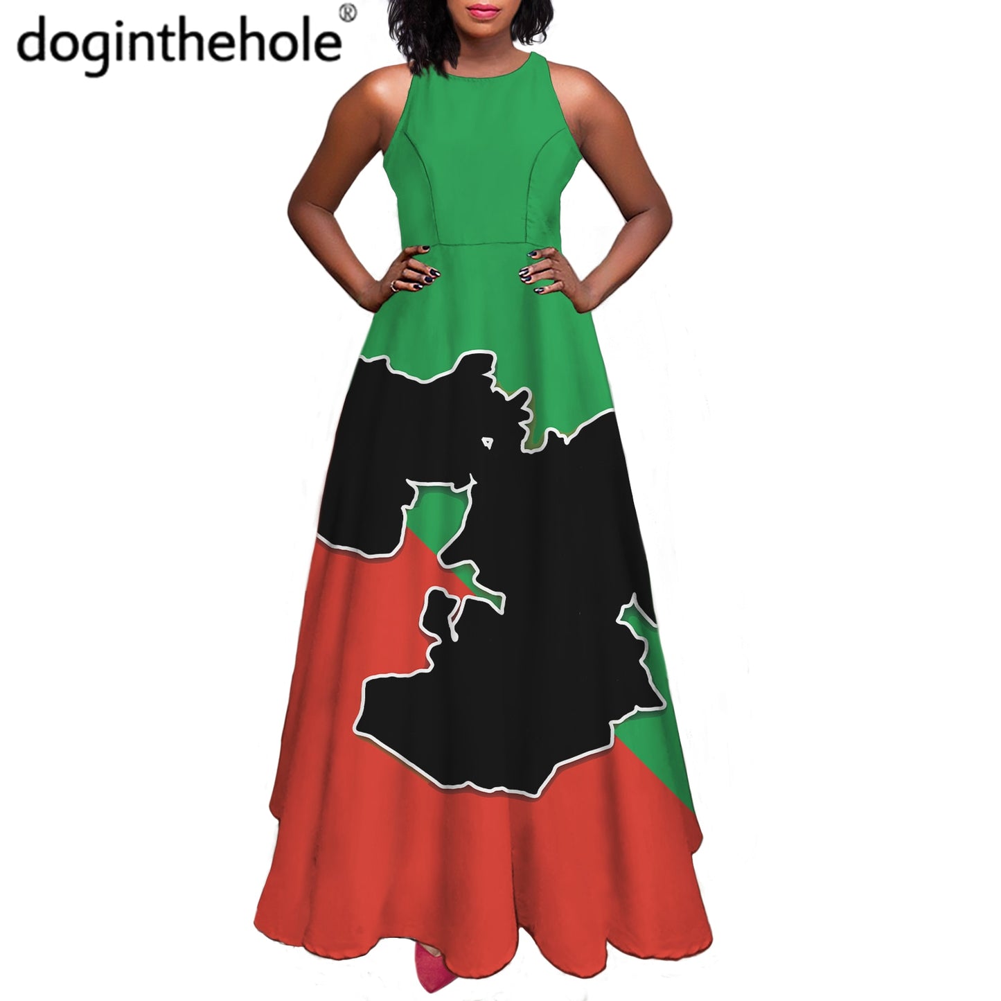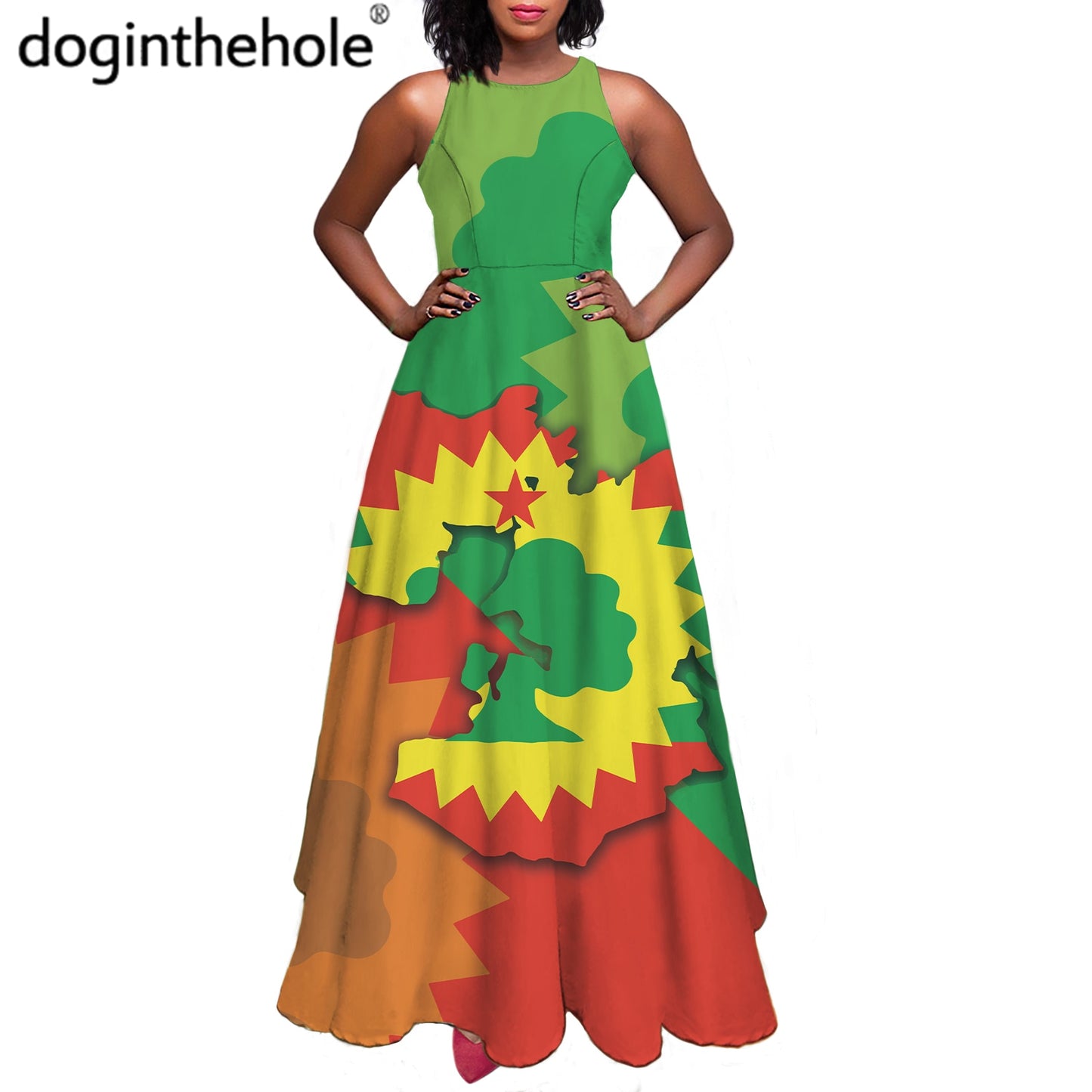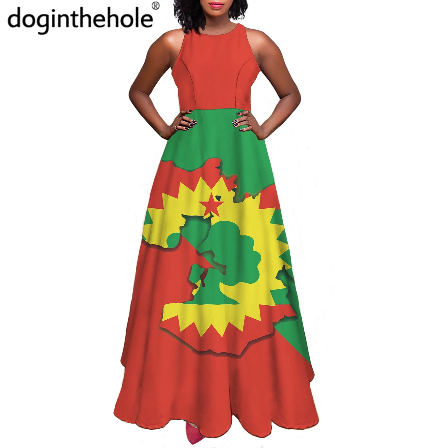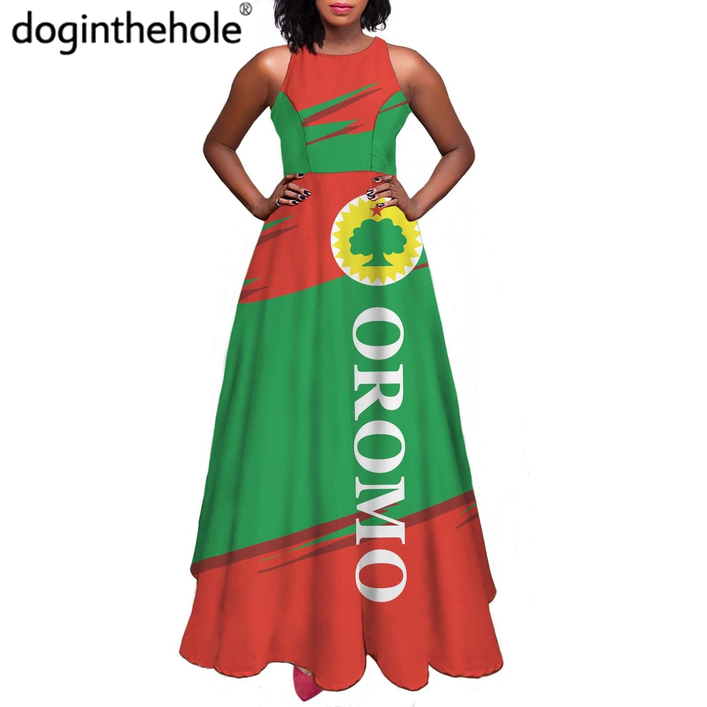 Oromo Flag Printed Long Sleeveless O-neck Party Dresses for Women