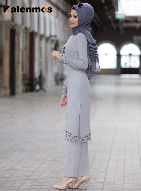 Plus Size 3xl Muslim 2Pecs Tops Pants Sets Women Ramadan Eid Turkey Abaya Dress Africa Kaftan Islamic Pakistan UAE Dubai Ropa