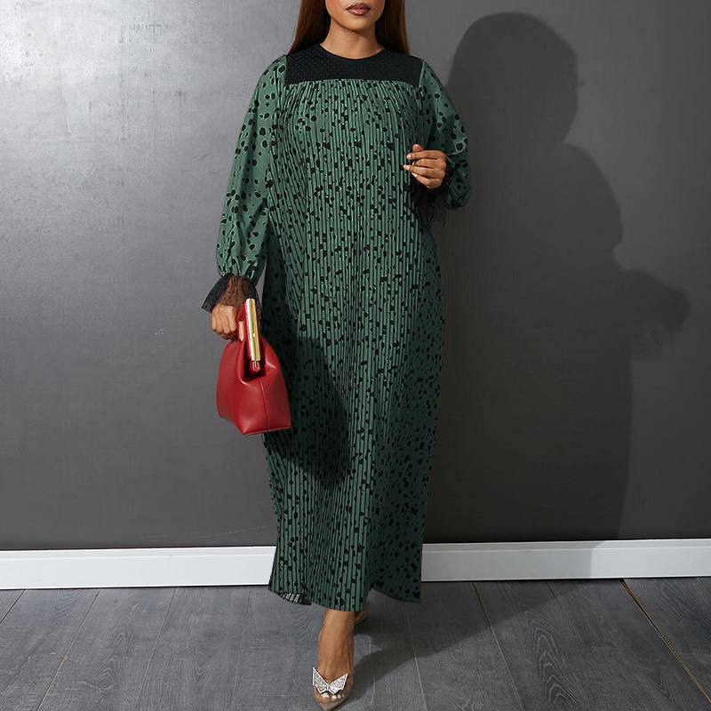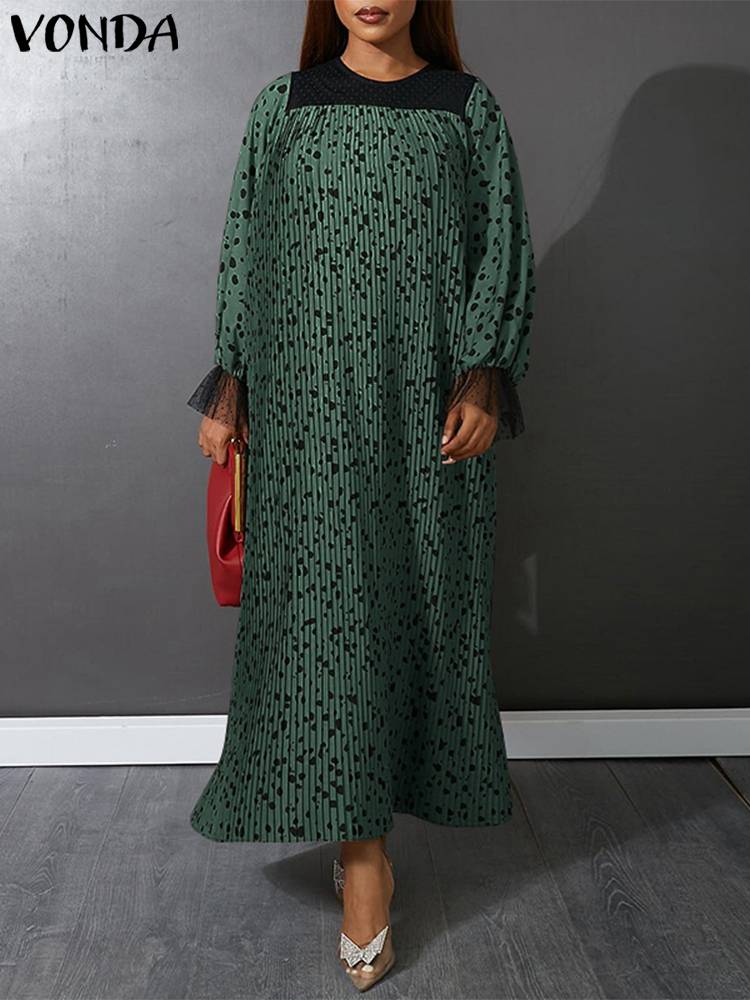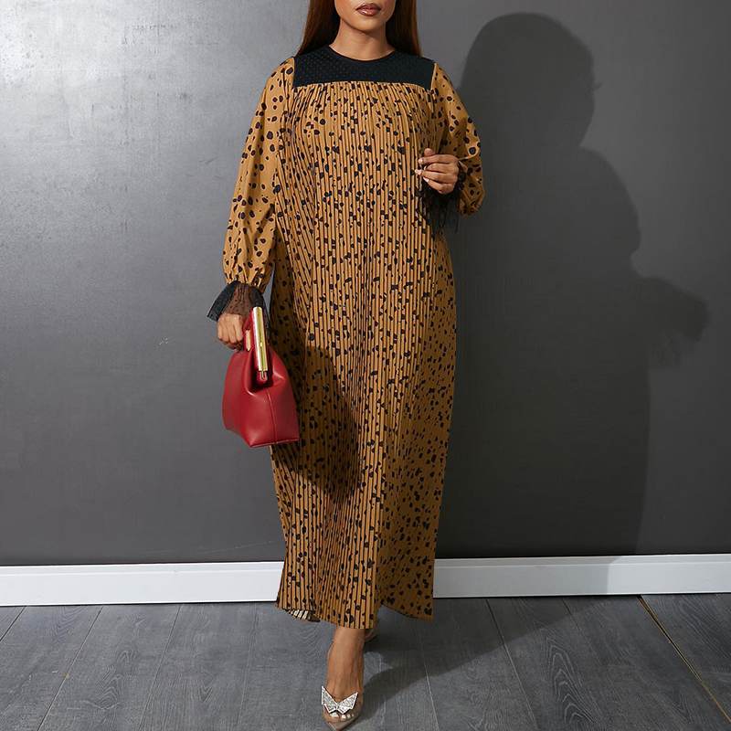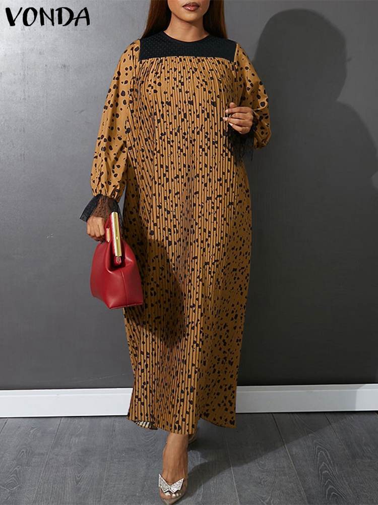 Plus Size Summer Women Dress Mesh Patchwork Bohemian Leopard Printed Long Sleeve Maxi dress