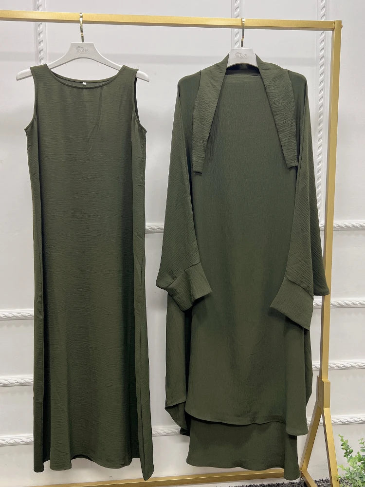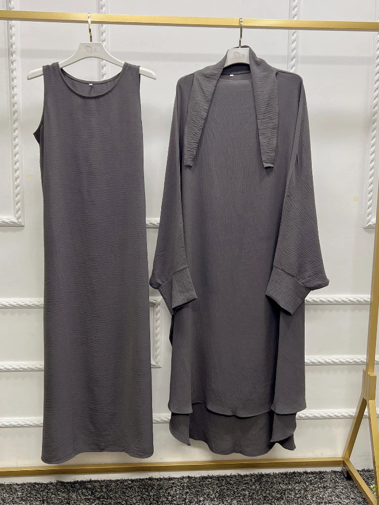 - The set includes a long khimar and an abaya, both made from high-quality polyester fabric that is comfortable and durable.